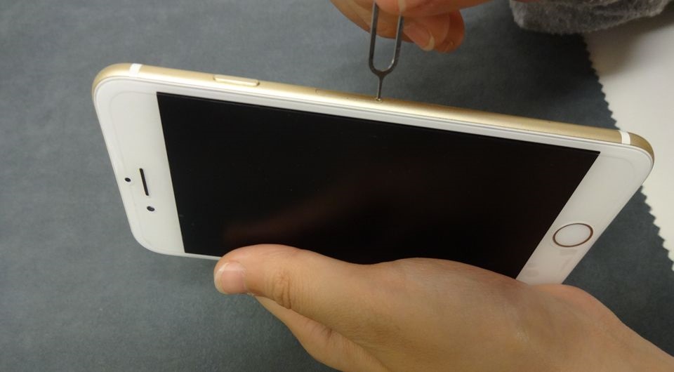 iPhone及びiPadは、本体側面の小穴にピン等を差し込む事で抜き取る事が出来ます。